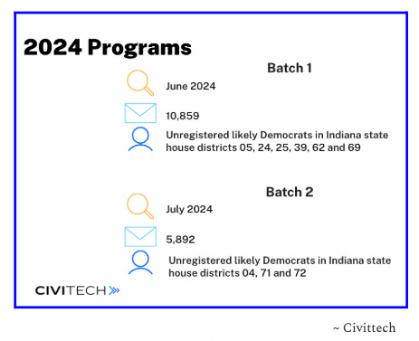 Despite a national trend of declining voter turnout, our program bucked the trend and outperformed Civitech's other voter registration programs nationwide, which averaged a 70% turnout. Although we aimed for an 80% turnout among newly registered voters, our consistent data-driven efforts across multiple fronts paid off, driving success even in a challenging environment.